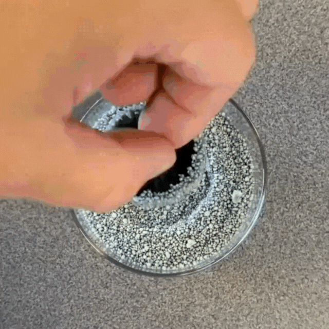 - Importante: Assicurati che lo stoppino sia posizionato lontano dai bordi e dal fondo del contenitore. Ti consigliamo di lasciare almeno 5 cm di perle attorno allo stoppino (contenitore di almeno 10 cm di larghezza) e 2,5 cm di perle sotto lo stoppino.
