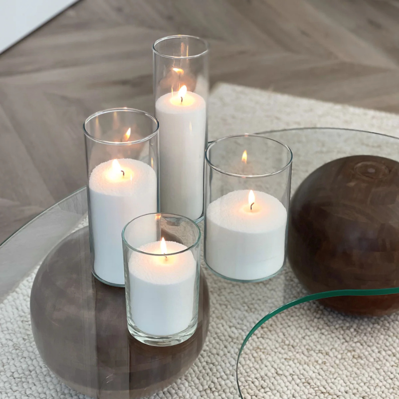 Il nostro Cilindro di Vetro è il complemento perfetto per le candele in cera perlata, pensato per valorizzare ogni ambiente con un tocco di raffinatezza. Realizzato con vetro trasparente di alta qualità, unisce design minimalista e massima resistenza, garantendo un'esperienza luminosa senza pari.